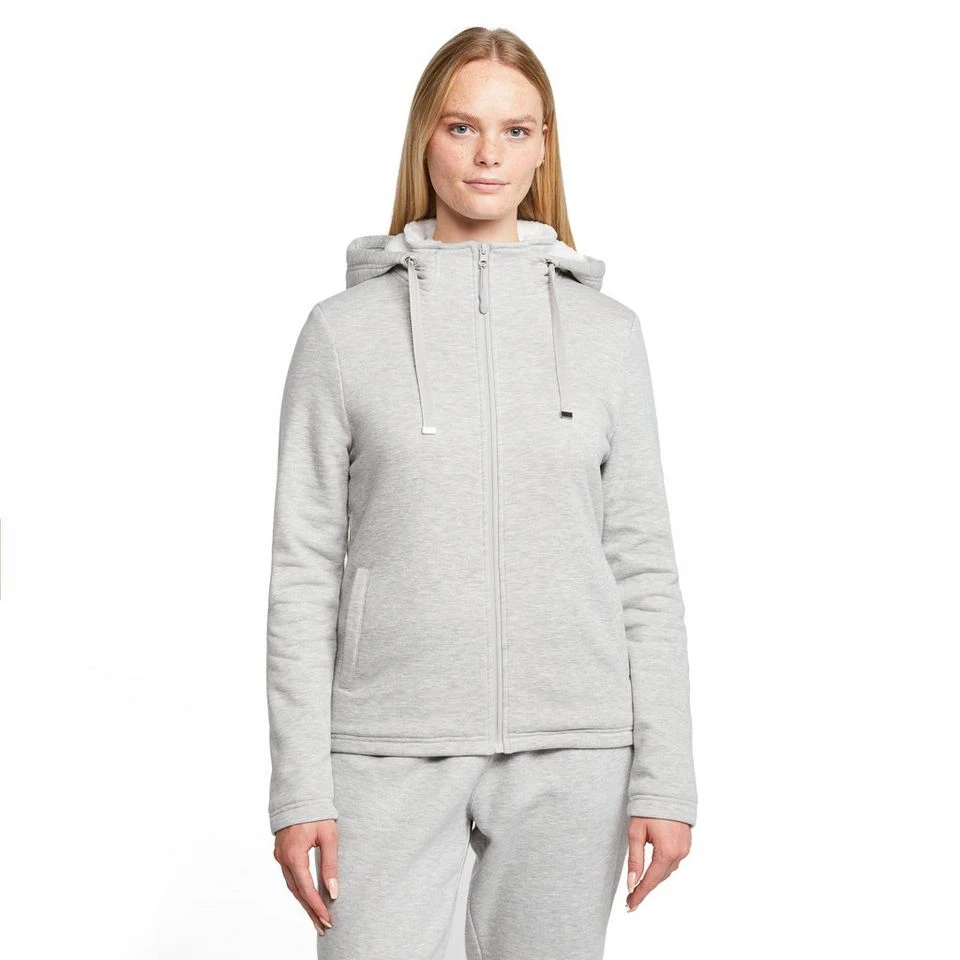 Includes two front hand pockets for stashing valuables and an adjustable hood with drawcord to keep heat in comfortably.